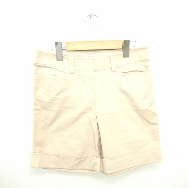 ナチュラルビューティーベーシック パンツ ハーフ ショート ロールアップ ジップフライ 無地 M ベージュ 薄茶 /TT16 レディース