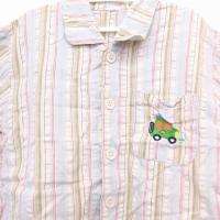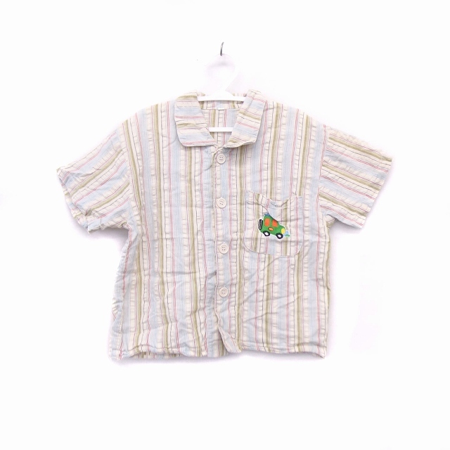 子供服 シャツ ブラウス 半袖 コットン 綿 ストライプ 柄 刺繍 車 110 アイボリー /HT8 N キッズ