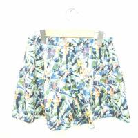 アズールバイマウジー AZUL by moussy パンツ キュロット ショート 花柄 ウエストゴム 薄手 S 緑 青 グリーン ブルー /TT14