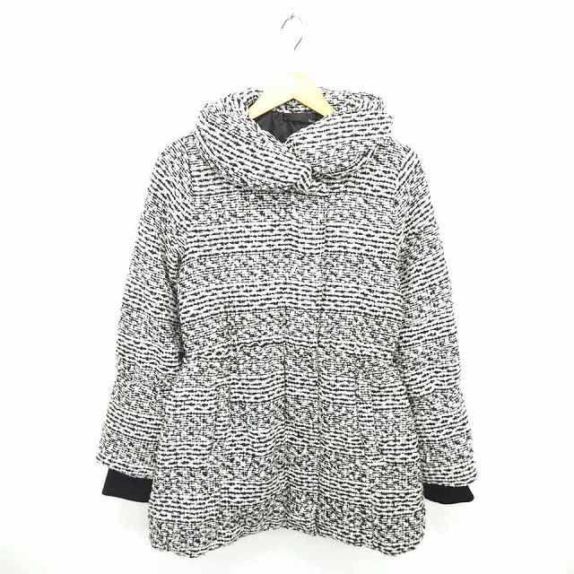 ヘザー Heather コート アウター 中綿 ミドル 総柄 ジップアップ リブ 長袖 S ホワイト ブラック 白 黒 /TT16 レディース