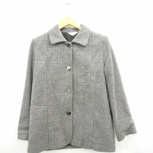 バトンルージュ Baton Rouge ステンカラーコート アウター 刺繍 総柄 ショート丈 長袖 M グレー /MT42 レディース