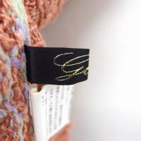 グリーム Gleam ニット ポンチョ 丸首 七分袖 総柄 かぎ針編み フリンジ M コーラルオレンジ /HT14 レディース