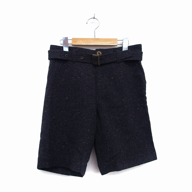 ローリーズファーム LOWRYS FARM ハーフ ショート パンツ 膝丈 ボトムス ウール混 総柄 ベルト 03 ブラック 黒 /HT16 レディース