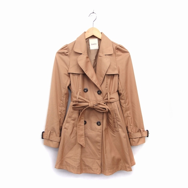 ダズリン dazzlin トレンチ コート ミディ丈 ペプラム パワーショルダー リボンベルト S キャメル 茶 /HT5 レディース