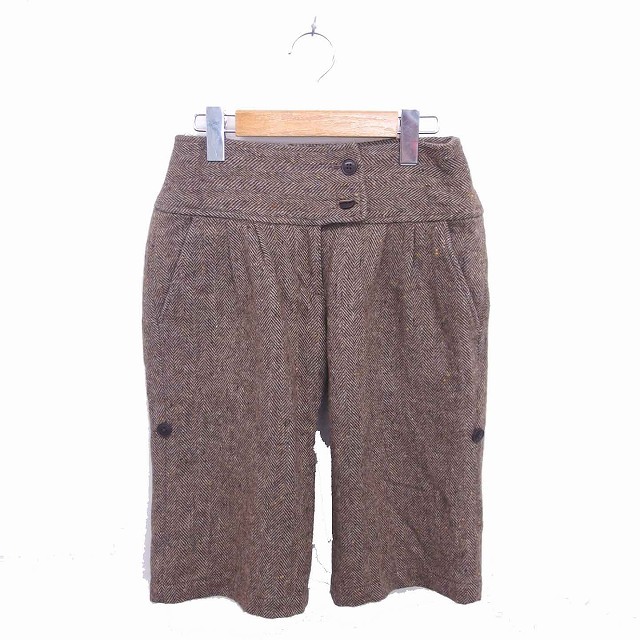 グリーンレーベルリラクシング ユナイテッドアローズ パンツ ハーフ ひざ丈 ヘリンボーン柄 ジップフライ 厚手 ウール XS 茶