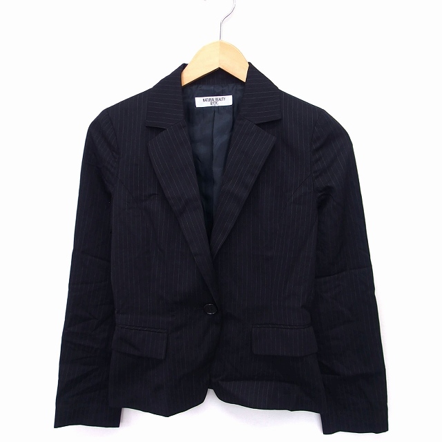 ナチュラルビューティーベーシック NATURAL BEAUTY BASIC テーラード ジャケット アウター ストライプ ウール S 黒 /FT7 レディース