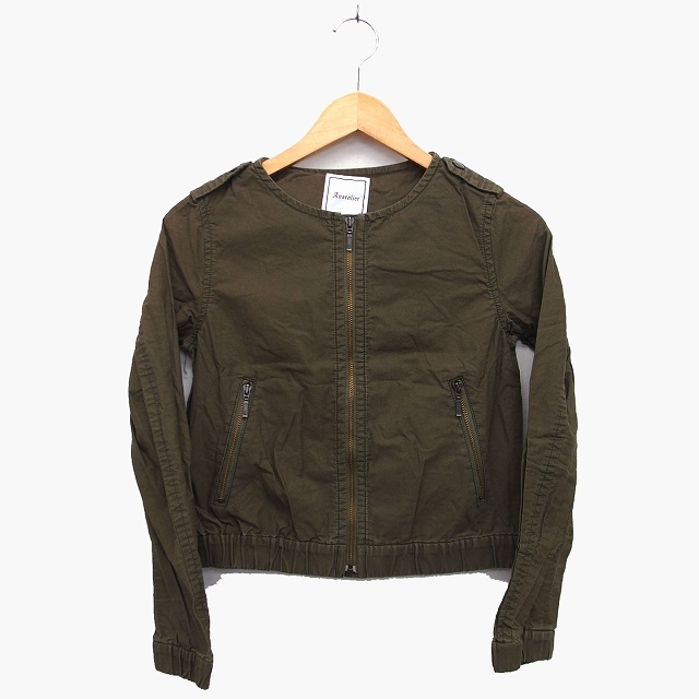 アナトリエ ANATELIER ミリタリー ノーカラー ジャケット 丸首 クロップド丈 コットン 綿 無地 シンプル 38 カーキ /HT31 レディース