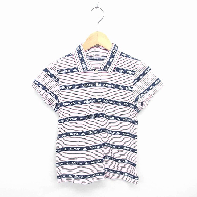 エレッセ ellesse ポロシャツ シャツ ボーダー 英字 綿 コットン 半袖 M ホワイト ネイビー 白 紺 /TT16 レディース