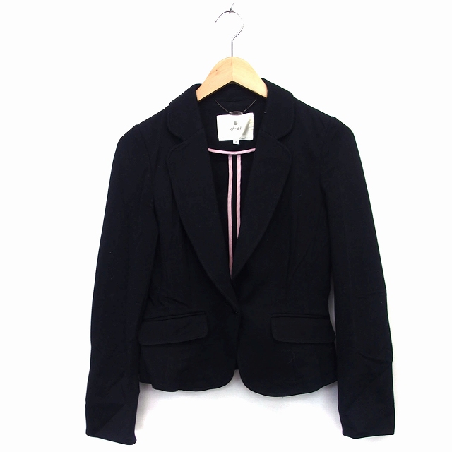 エフデ ef-de テーラード ジャケット シングル 総柄 パイピング チャーム ペプラム 袖スリット 綿混 9 ブラック 黒 /HT6 レディース