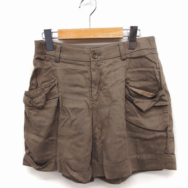 クローラ crolla ショートパンツ ロールアップ 無地 麻混 36 ブラウン 茶 /FT28 レディース