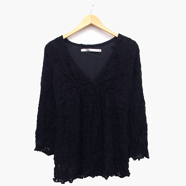 グーコミューン gout commun チュニック カットソー 長袖 Vネック レース 総柄 テープ M ブラック 黒 /HT9 レディース