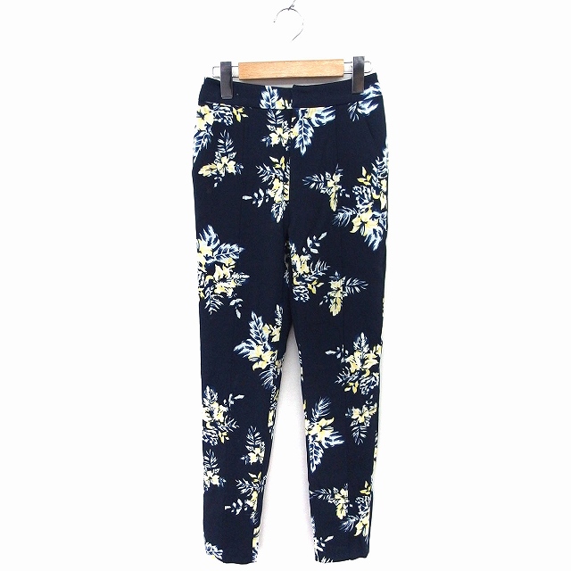 リエンダ rienda ボタニカル柄 スキニー スリム パンツ センターシーム XS ネイビー 紺 /FT36 レディース