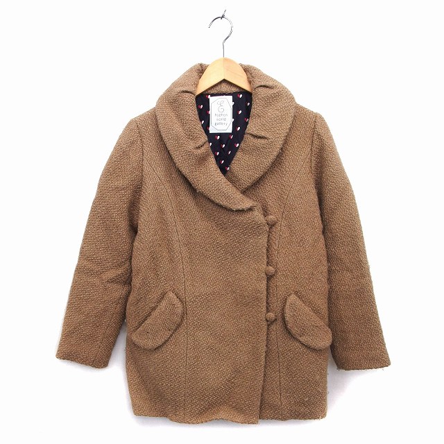 イーハイフンワールドギャラリー E HYPHEN WORLD GALLERY 中綿 コート アウター ショールカラー ウール混 スリット 茶