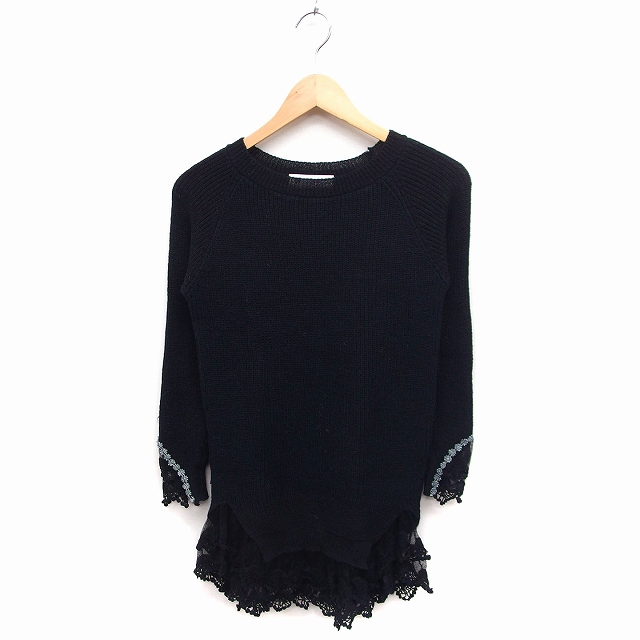 グレイスフルスマイル Gracefulsmile チュニック ニット セーター レース 長袖 丸首 ブラック 黒 /FT6 レディース
