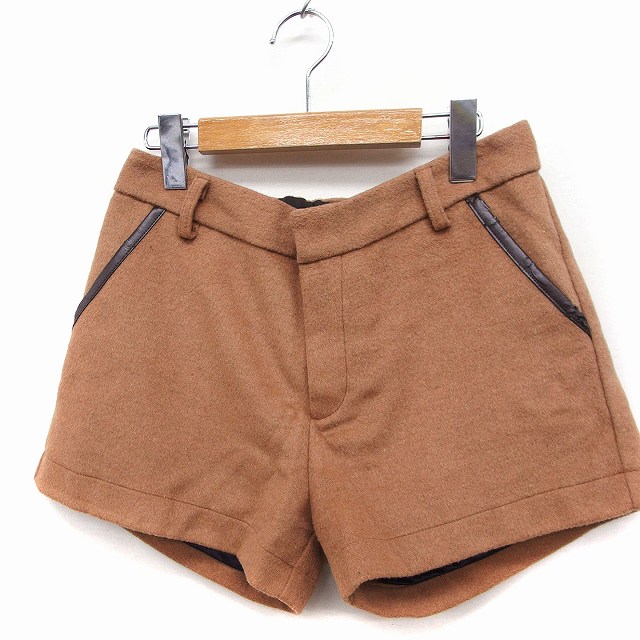 カプリシューレマージュ CAPRICIEUX LE'MAGE ショートパンツ フェイクレザー切替 メルトン 無地 M キャメル 茶 /FT14 レディース