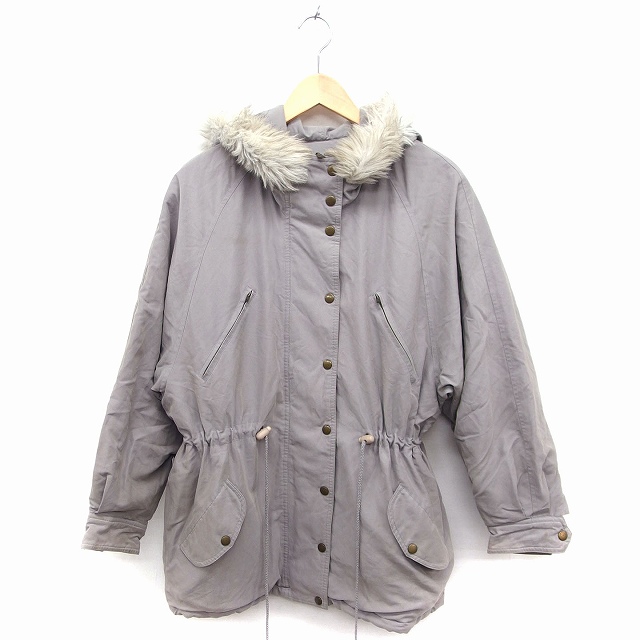 Pat Hogue フーデッド 中綿 コート アウター ミディ丈 無地 フェイクファー グレー /FT1 レディース