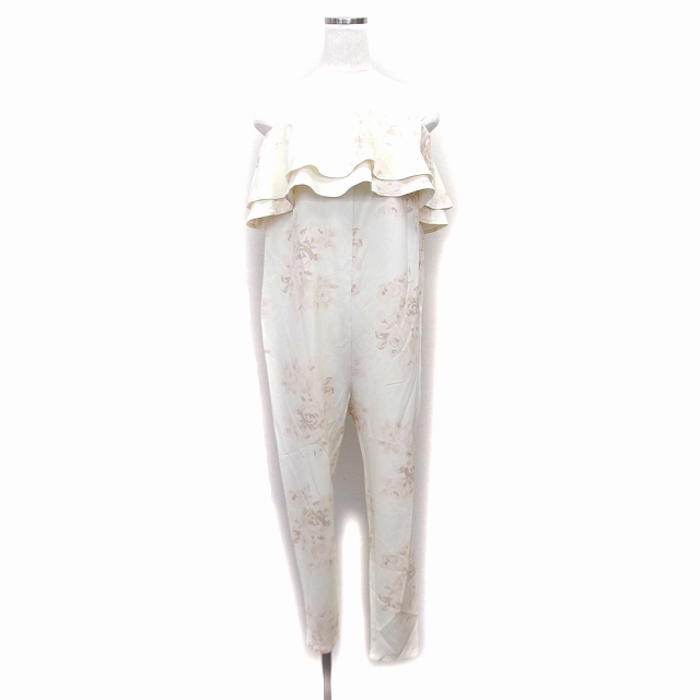 デュラス DURAS オールインワン サロペット ジャンプスーツ テーパード ベアトップ フリル 透け感 花柄 F クリーム /NT33 レディース