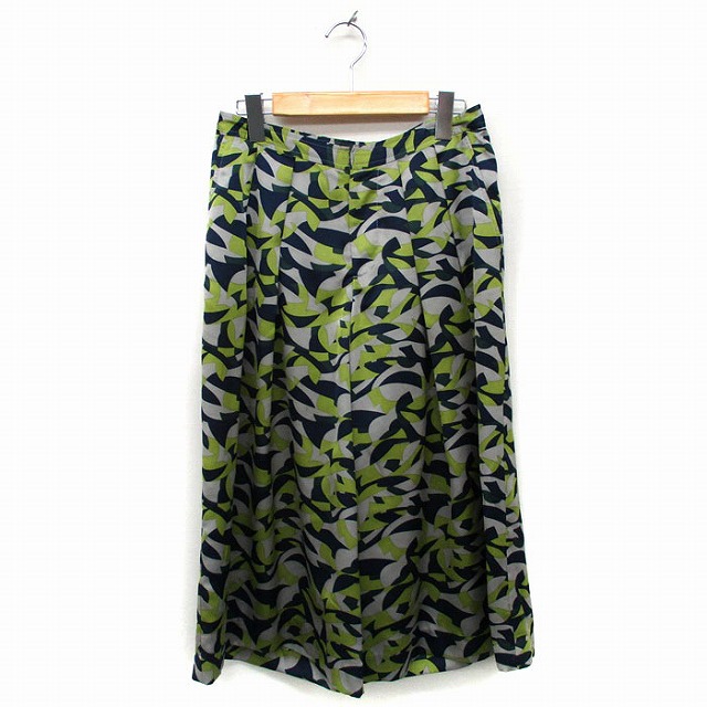 アペーナ APPENA ガウチョパンツ 柄 タック ワイド 38 グレー 灰 ネイビー 紺 /FT36 レディース