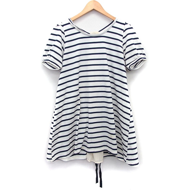 ワンアフター アナザー ナイスクラップ one after another NICE CLAUP チュニック カットソー ボーダー シフォン 半袖 白 /HT3 レディース