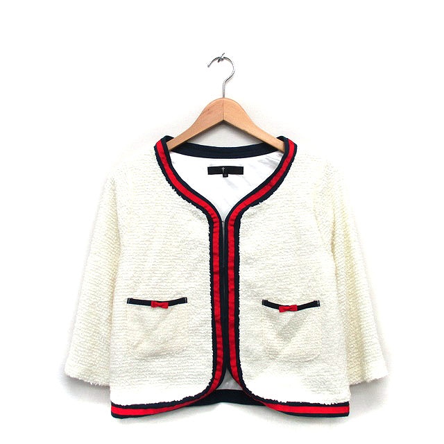 C.C.T CROSS ノーカラー ジャケット 七分袖 シンプル 38 ホワイト 白 /KT35 レディース