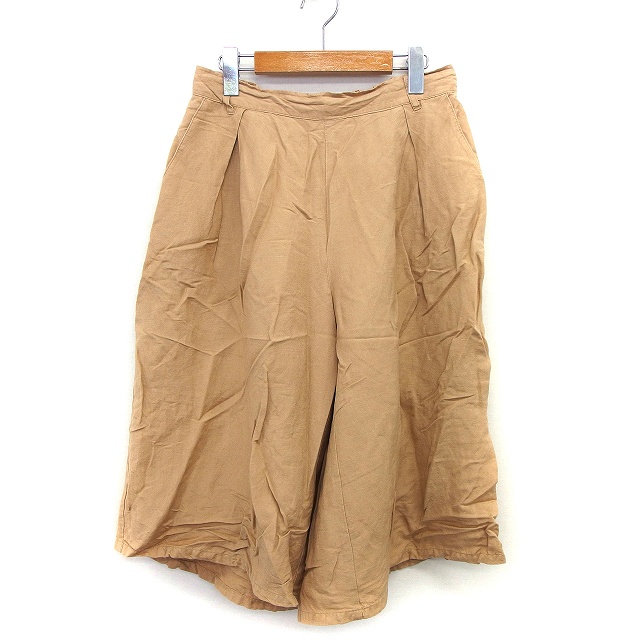 レトロガール RETRO GIRL ガウチョ パンツ イージー ワイド クロップド 無地 シンプル タック 麻混 M キャメル 茶 /HT32 レディース