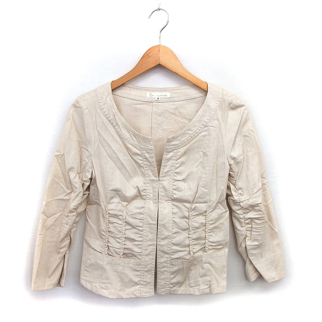 ピエスモンテ PIECE MONTEE Rme by ジャケット アウター ノーカラー リネン混 コットン 綿 クロップド ギャザー 38 ベージュ /NT31