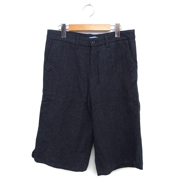 シュカ Shuca パンツ ストレート ハーフ ウール混 ジップフライ シンプル L 黒 ブラック /NT12 レディース