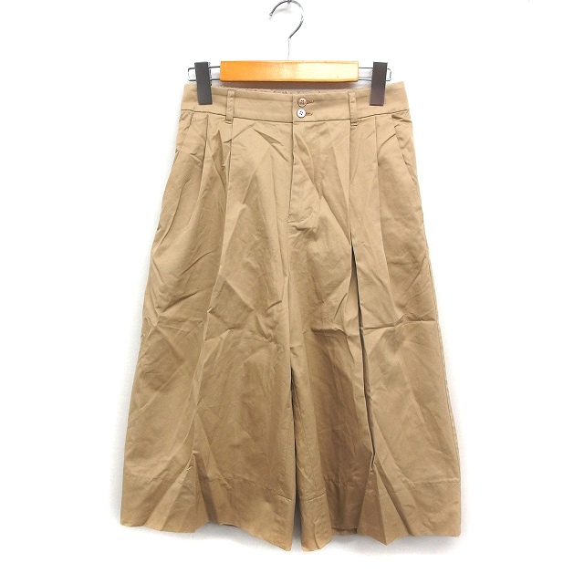 ヒューマンウーマン HUMAN WOMAN タック ガウチョパンツ ワイド 無地 コットン 綿 S ベージュ /FT6 レディース