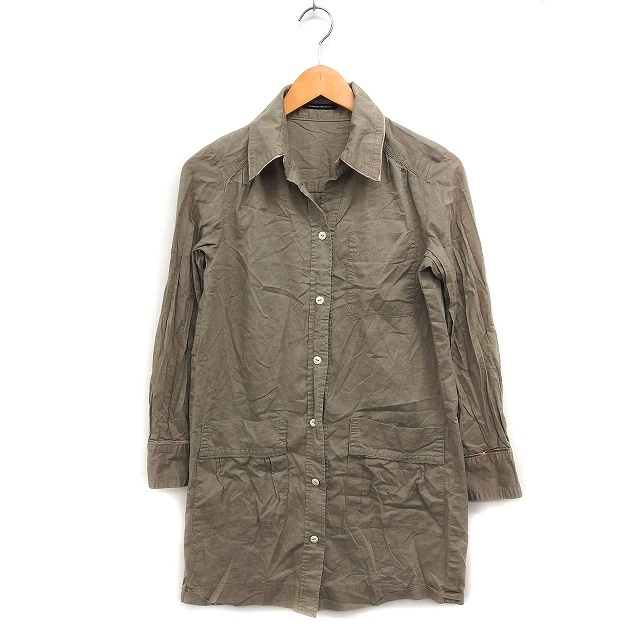 アバハウス ドゥヴィネット abahouse devinette シャツ チュニック 長袖 無地 コットン 綿 カーキ /FT40 レディース