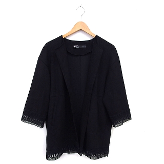 ザラ ZARA フェイクスエード ジャケット アウター レース オープン M 黒 ブラック /NT35 レディース