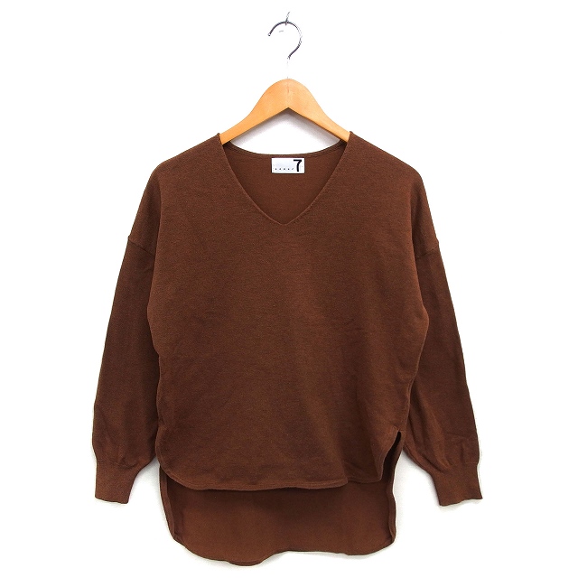 スール soeur7 チュニック カットソー ロングテール Vネック ドロップショルダー スリット 長袖 F 茶 ブラウン /NT5 レディース