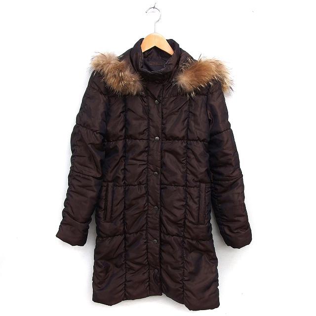 プロフィール PROFILE ラクーンファー 中綿コート アウター ミドル ジップアップ リブ 38 茶 ブラウン /NT3 レディース