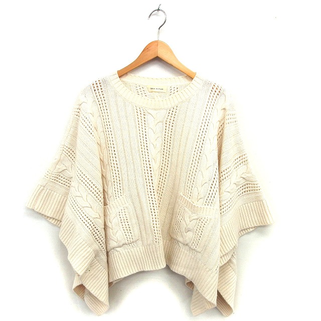 デビュー ド フィオレ Debut de Fiore ニット ポンチョ ケーブル編み リブ ボートネック ウール混 38 ベージュ /NT13 レディース