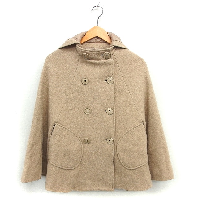 ルーニィ LOUNIE ポンチョ フード ダブル ウール アウター 総裏地 無地 ベージュ /NT27 レディース
