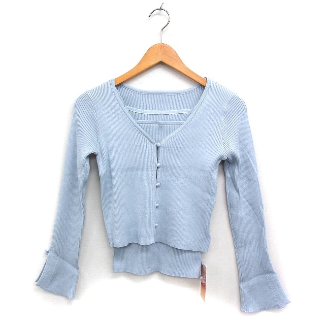 未使用品 クリア clear タグ付き アンサンブル ニット カーディガン キャミソール リブ 無地 F サックスブルー /FT1 レディース