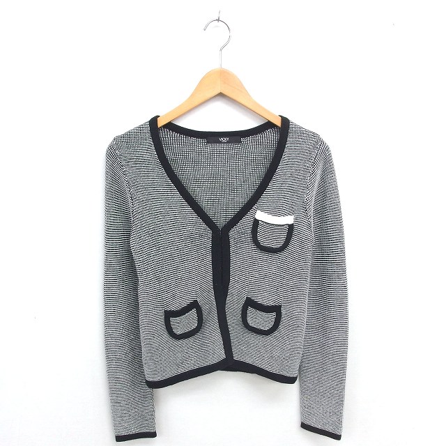 ビッキー VICKY ノーカラー ジャケット アウター ニット ホック留め 2 ホワイト ブラック 白 黒 /TT レディース