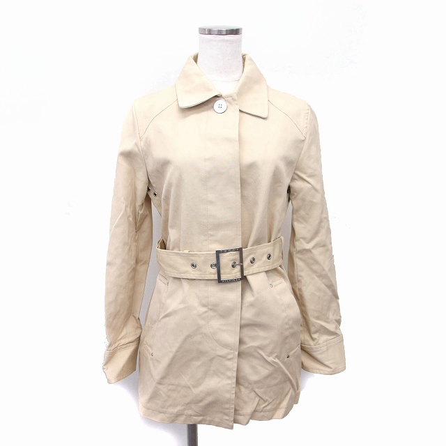 【状態】この商品には下記のようなダメージがあります。 ・左肩から袖にかけて5mm程度の複数の茶色の汚れ ・ボタン付近に4mm程度の茶色のシミ ・後身頃中央に1mm程度の茶色の汚れ ・右肩に5mm程度の茶色の汚れ ・左脇付近に2mm程度の茶色の汚れ ・左袖に2cm程度の茶色の汚れ ・ベルトに2cm程度の黄色のシミ その他に目立ったダメージはなくまだまだご使用いただける商品です。 ※あくまでも中古品ですので掲載写真や記載内容をご確認いただき、ご理解の上ご購入ください。