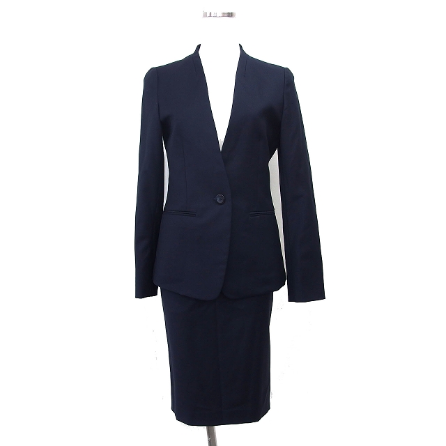 ボッシュ BOSCH スカートスーツ セットアップ ノーカラー ジャケット 総裏地 タイト ひざ下 スリット ウール 34 黒 ブラック /NT30