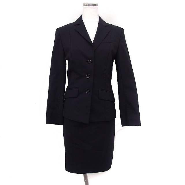 クミキョク 組曲 KUMIKYOKU スカートスーツ テーラードジャケット タイトスカート ミニ 無地 ウール 1 ブラック 黒 /FT6 レディース