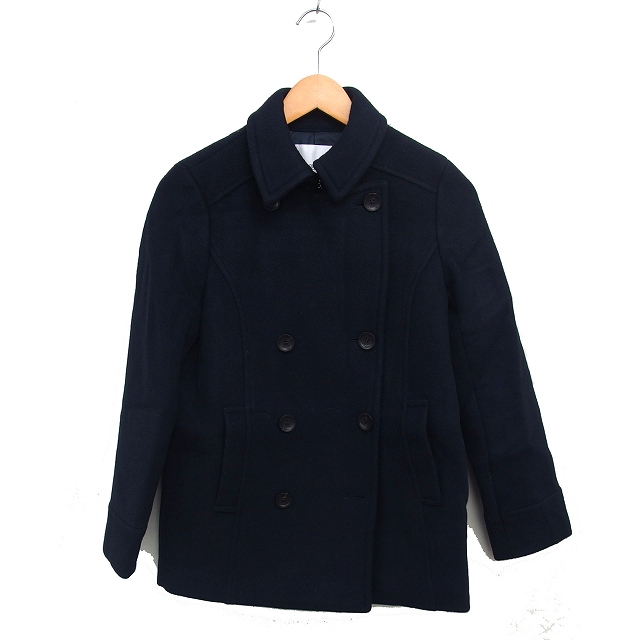 ナチュラルビューティーベーシック NATURAL BEAUTY BASIC Pコート ピーコート ダブル ウール メルトン スリット ショート M 紺