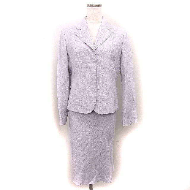 アリスバーリー Aylesbury スカートスーツ セットアップ ツイード テーラード ジャケット 背抜き フレア ひざ丈 ラメ混 9 紫 パープル