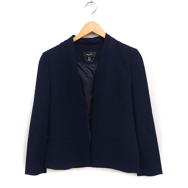 マンゴ MANGO スタンドカラー ジャケット オープン 無地 M ネイビー 紺 /FT19 レディース