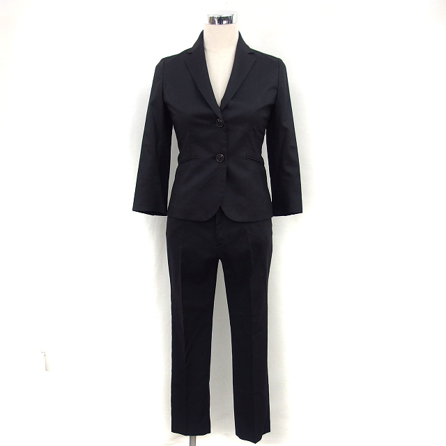 ハリス HARRISS パンツスーツ セットアップ テーラードジャケット スリット 背抜き スラックス ストレート 36 38 黒 ブラック /NT18