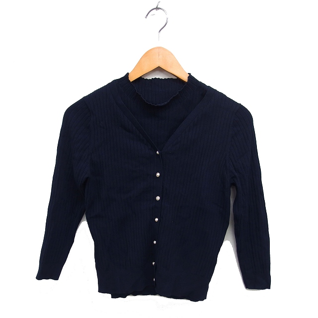 ジャスグリッティー JUSGLITTY アンサンブルニット ツインニット カーディガン リブ ハイゲージ 長袖 ノースリーブ 2 紺 ネイビー