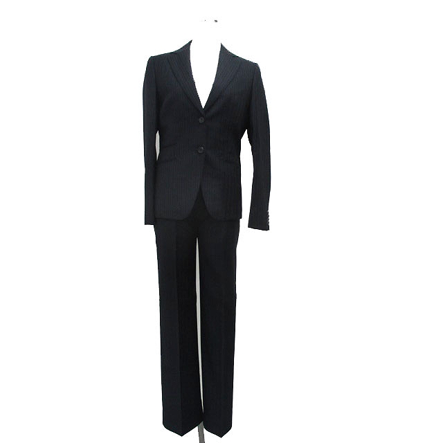 トゥモローランド TOMORROWLAND セットアップ ビジネススーツ テーラードジャケット スラックス センタープレス ウール ストライプ 36 ネイビー /KT3 レディース