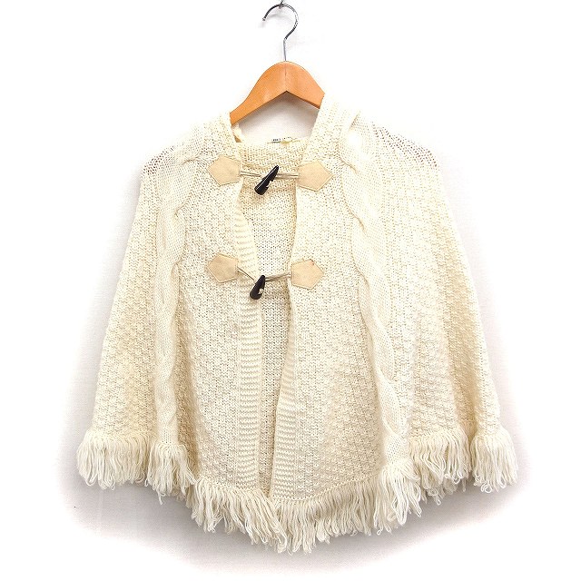 エムケー ミッシェルクラン MK MICHEL KLEIN フーデッド ポンチョ ケーブル編み ニット フリンジ 38 アイボリー 白 /FT43 レディース