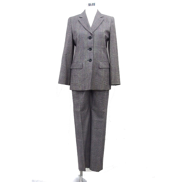 キャラオクルス CARA O CRUZ グレンチェック スーツ セットアップ テーラードジャケット 総裏地 スラックス ワイド ウール 7 グレー