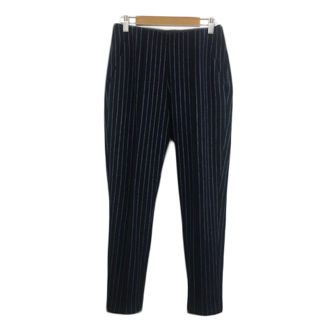 マウジー moussy パンツ テーパード ロング センターシーム ストライプ ウエストゴム 1 紺 白 ネイビー ホワイト レディース