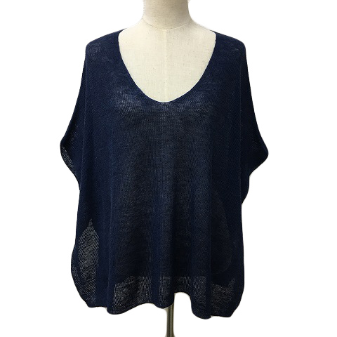 ケーティーリノ K.T LINO ポンチョ カットソー ニット プルオーバー Uネック 無地 リブ リネン 半袖 9 紺 ネイビー レディース