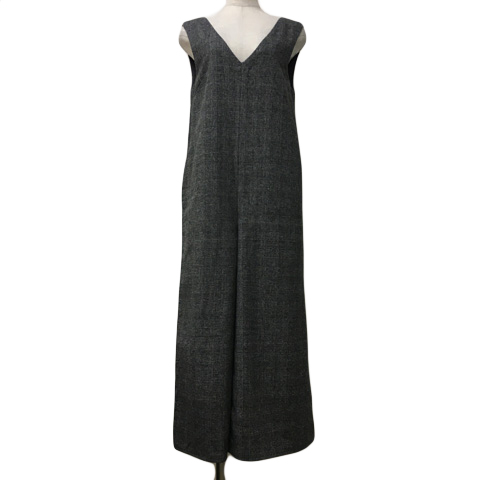 アングリッド UNGRID オールインワン サロペット ワイド ロング グレンチェック ノースリーブ S グレー 黒 ブラック レディース